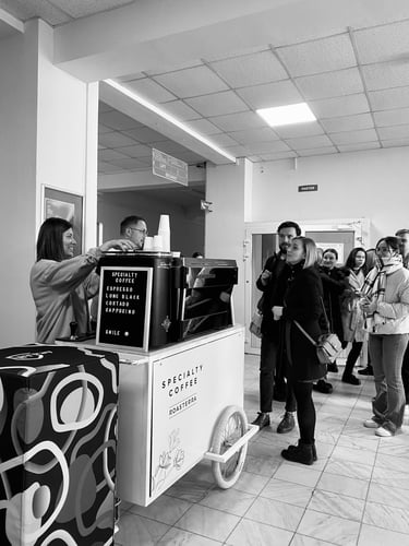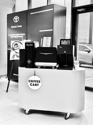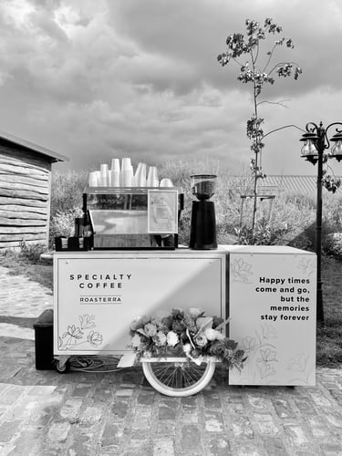 Bine ai venit la Coffee Cart, locul unde pasiunea pentru cafea de specialitate se întâlnește cu inovația! Oferim o experiență cu totul diferită, perfect adaptată evenimentelor tale speciale. Fie că organizezi o nuntă, un congres, un simpozion, un festival sau un eveniment corporate, suntem partenerul ideal pentru a impresiona invitații și a transforma fiecare pauză de cafea într-un moment memorabil.