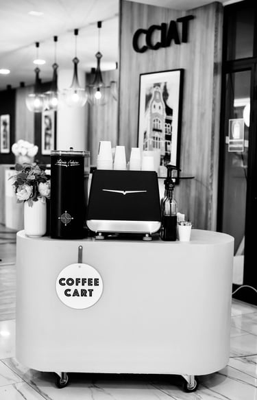 Fie că ai nevoie de o stație de cafea mobilă elegantă sau de un stand personalizat pentru un eveniment de amploare, Coffee Cart este alegerea perfectă. Cu noi, nu oferi doar cafea – oferi o experiență unică pe care invitații tăi o vor ține minte mult timp.